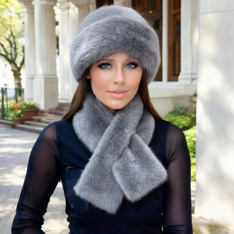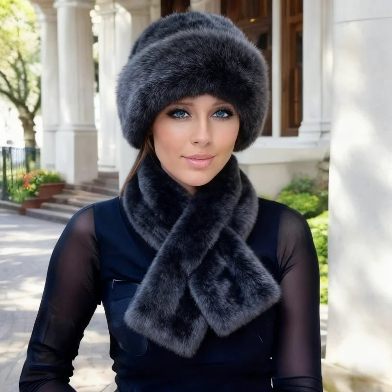 The elegant design of this scarf and hat set makes it suitable for a variety of occasions, from high-end parties to cold commutes.